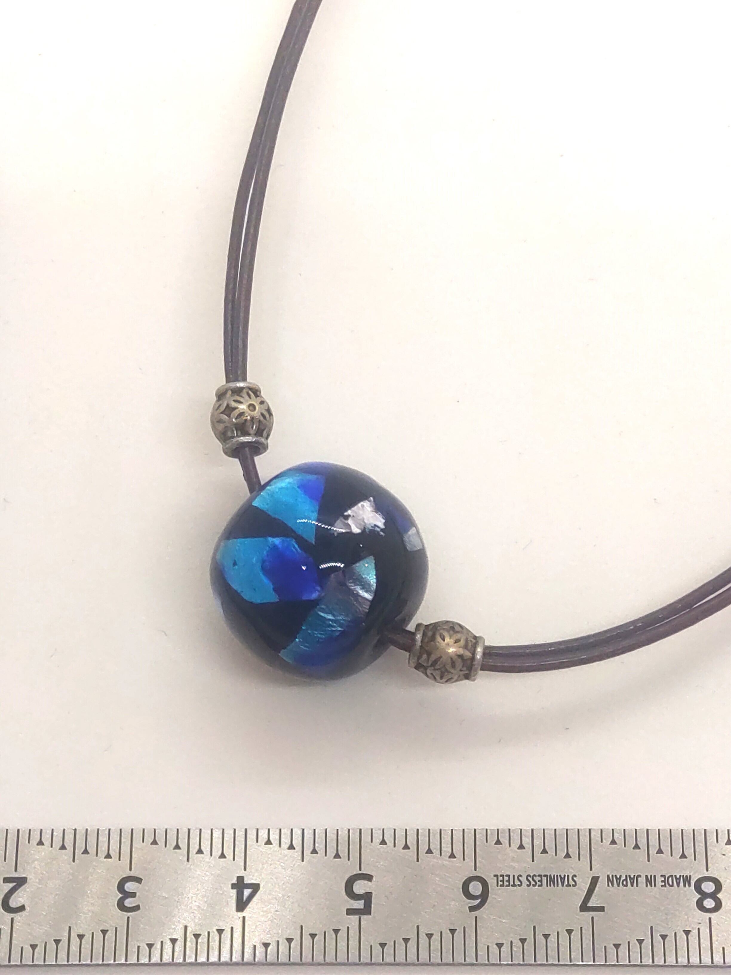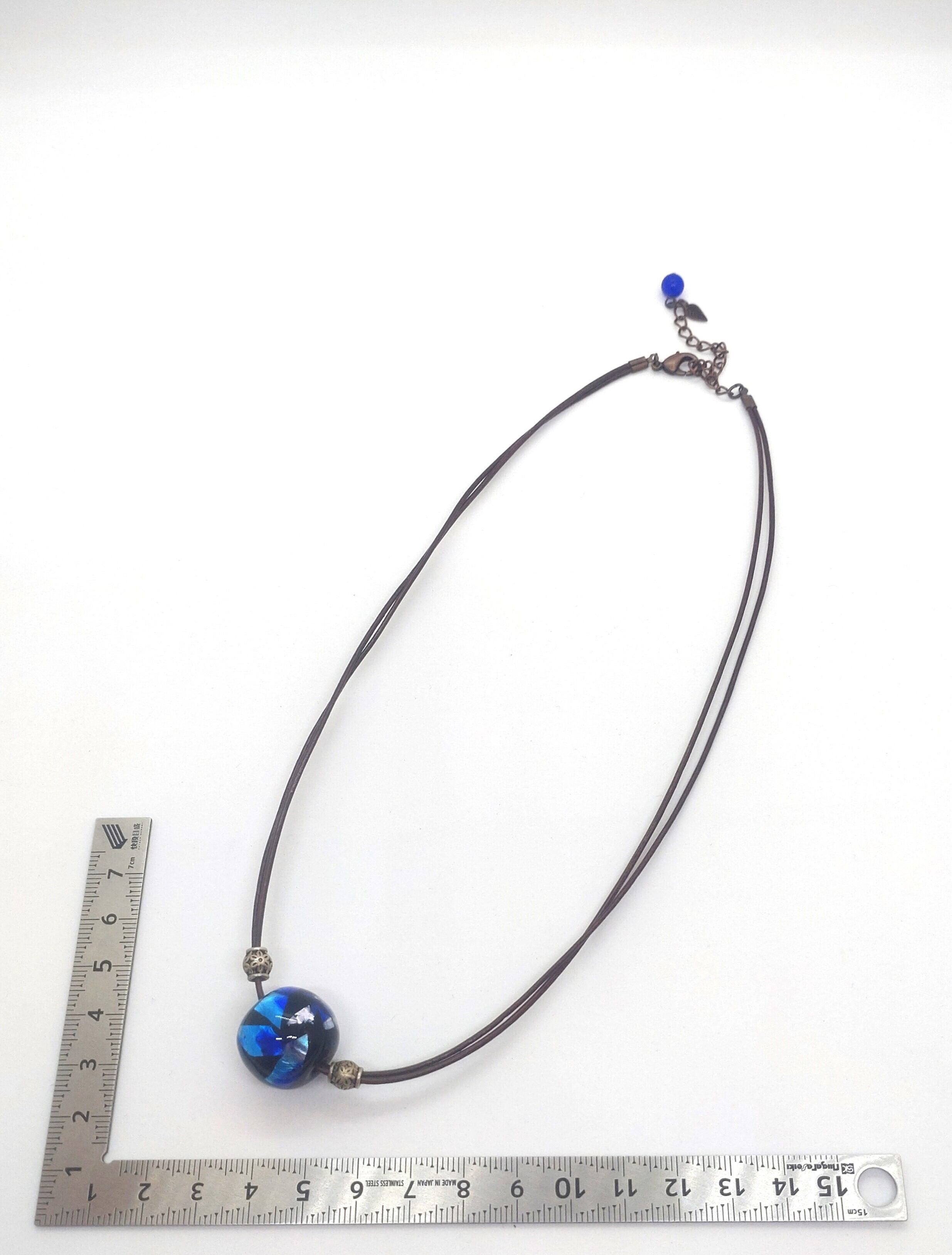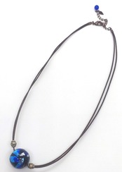 キラキラ光る深い青が印象的なとんぼ玉を使ったネックレスです。