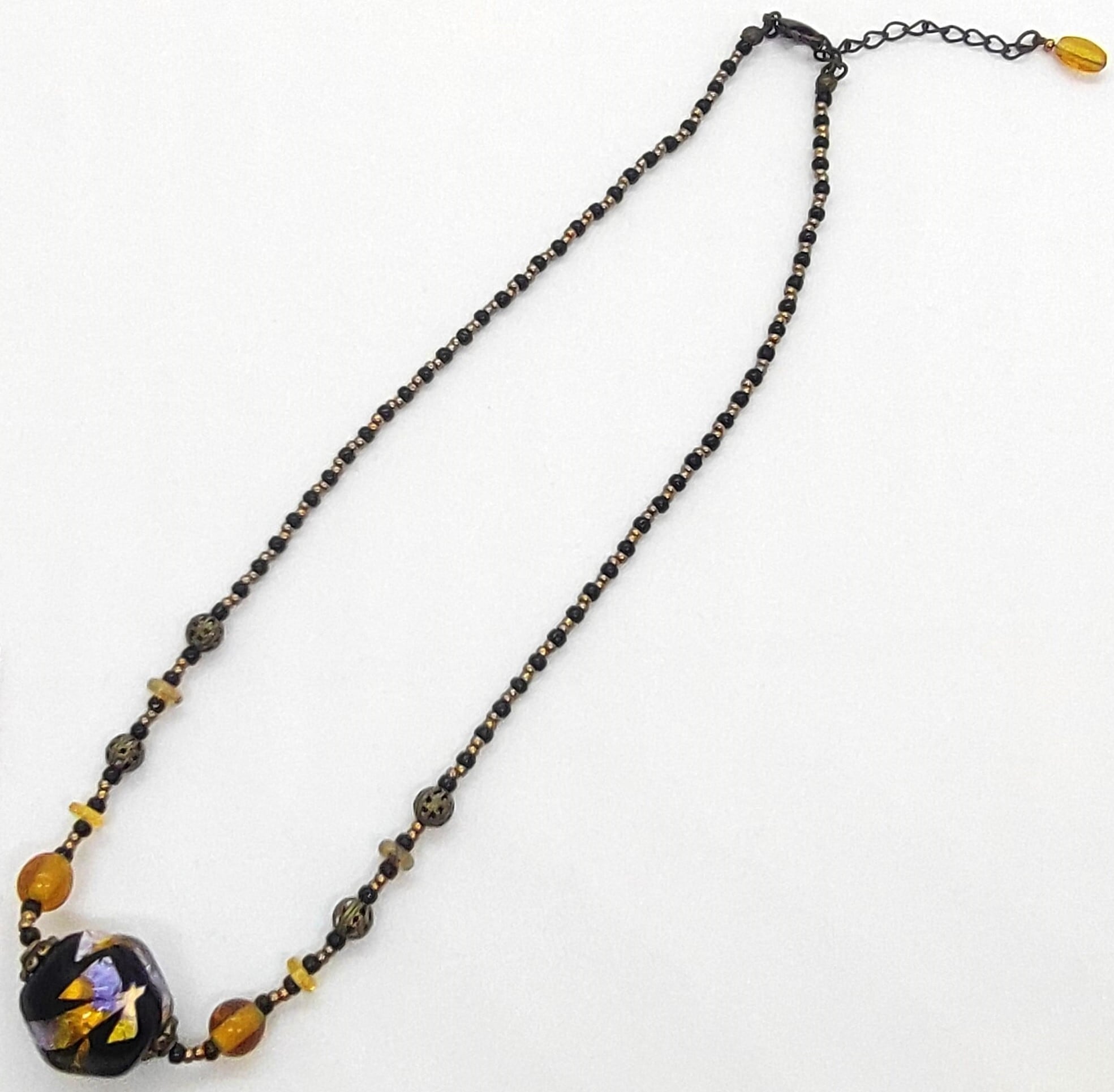 ハロウィンカラーが印象的なとんぼ玉を使ったネックレスです。