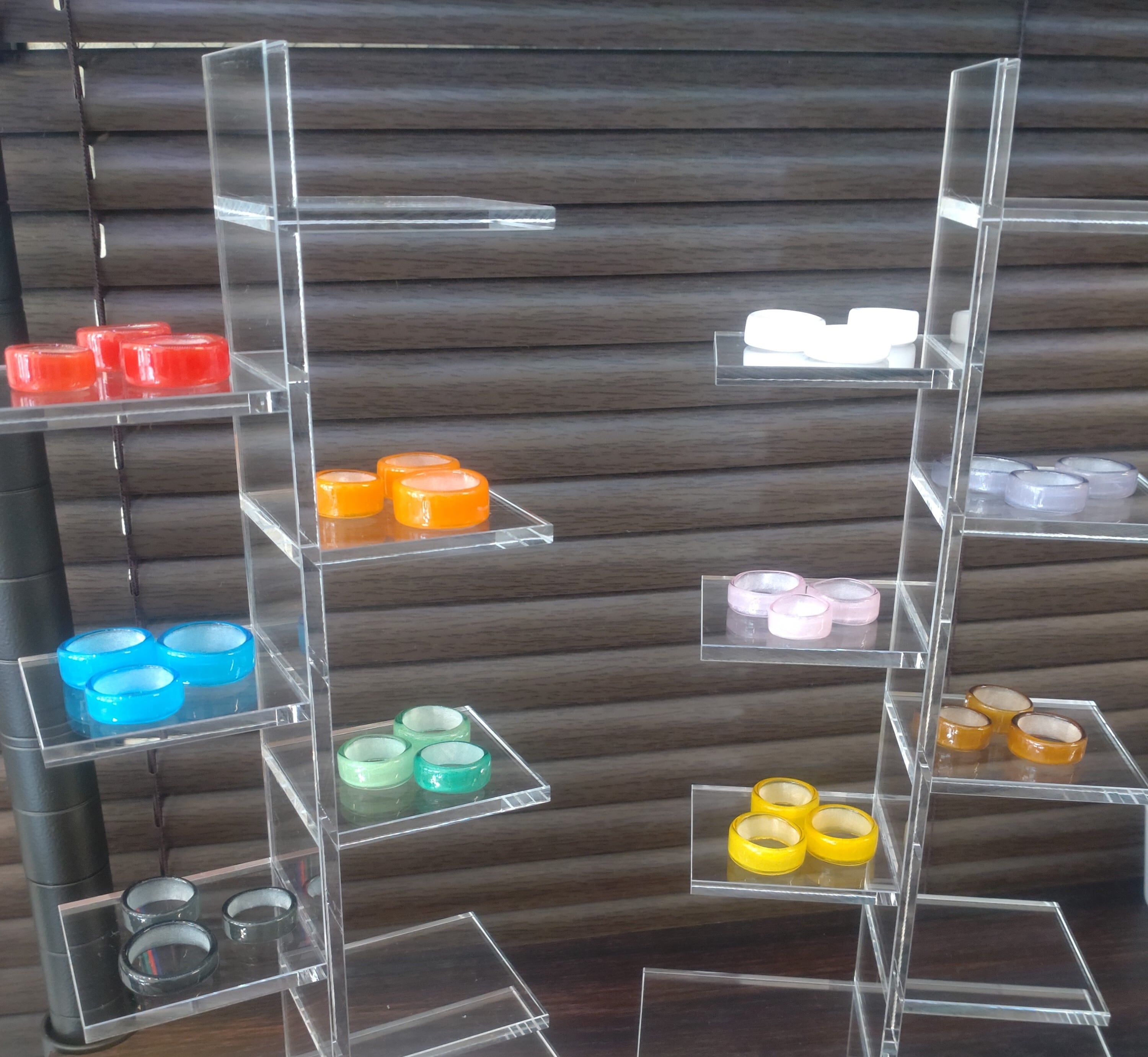 ガラス製のリングのサイズは非常にシビアですので、可能であれば店舗でのサイズ確認をお勧めいたします。各リングは手作り、また製造工程上、サイズ感には多少の個体差があります。サイズは特定の範囲でご指定いただけますが、ご希望のサイズに関しては直接お問い合わせいただければと思います。