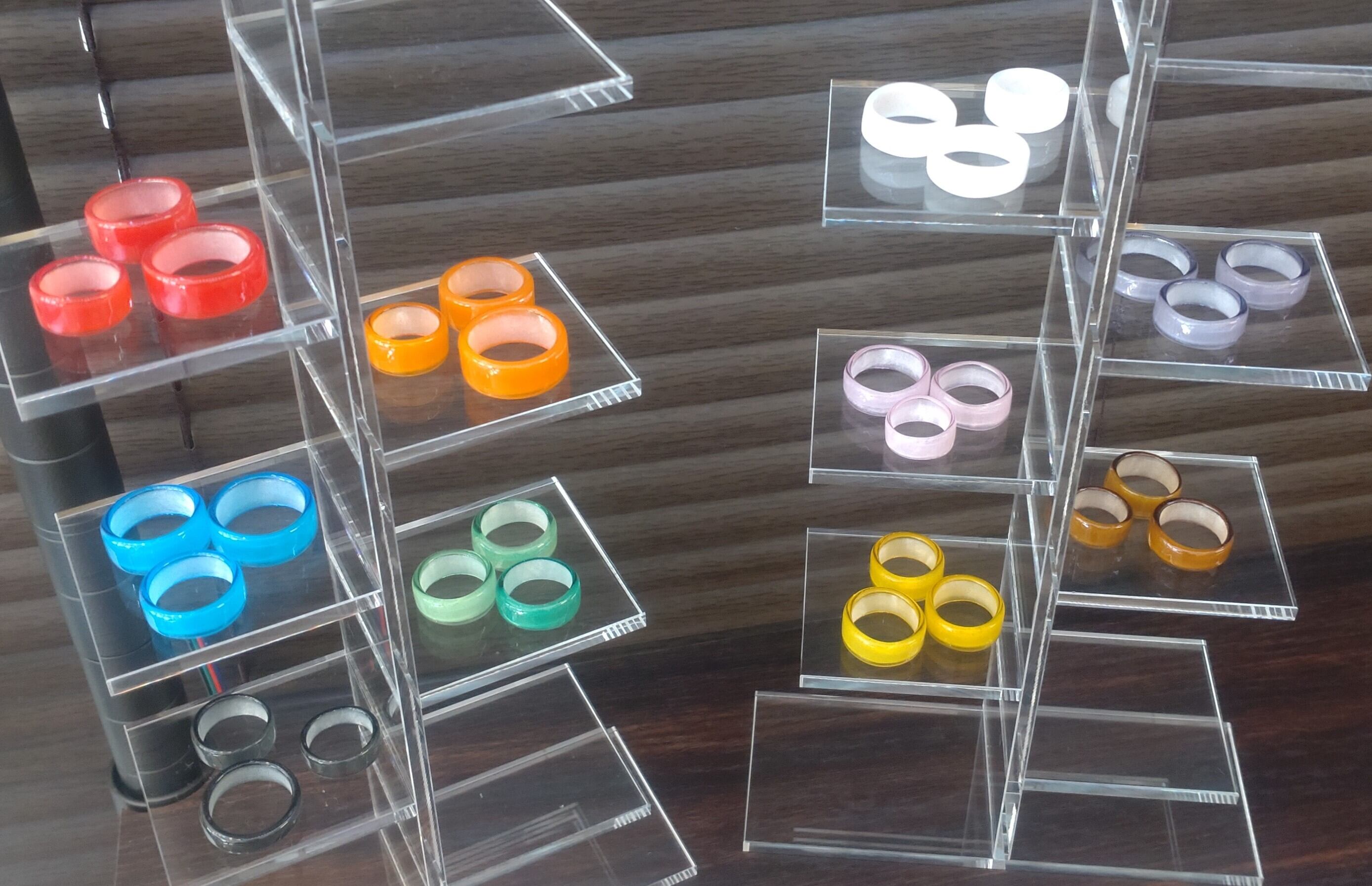 ガラスのリングは、シンプルながらも独自の存在感を放ちます。日常のファッションに自然に溶け込むので、カジュアルからドレッシーまで、幅広いシーンでお使いいただけるアイテムです。